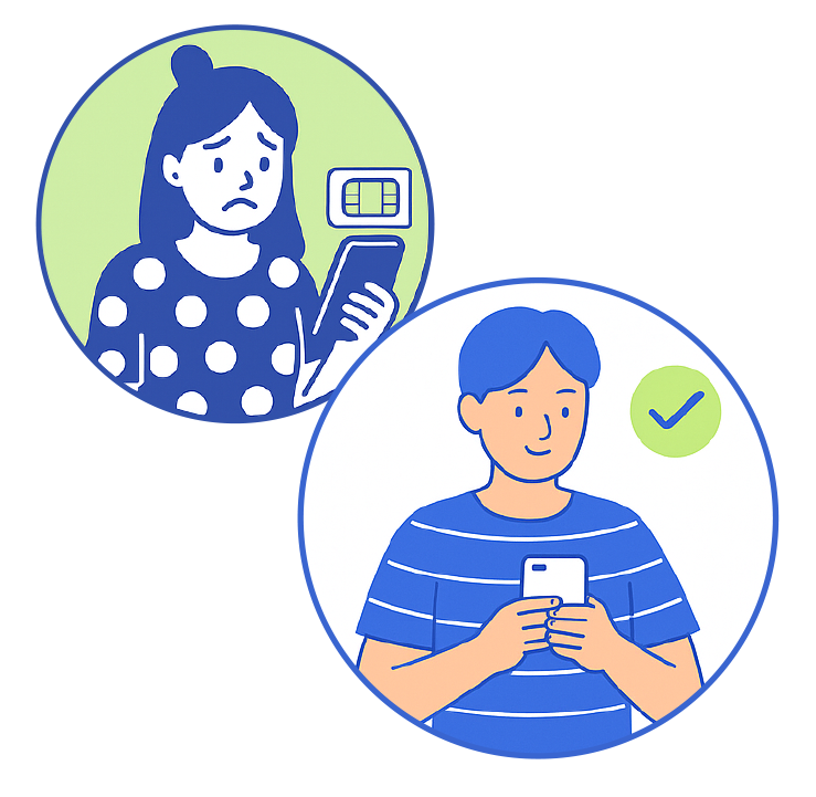 スマホ本体にSIMが内蔵されているので、従来のように小さなカードを差し替える必要がありません。